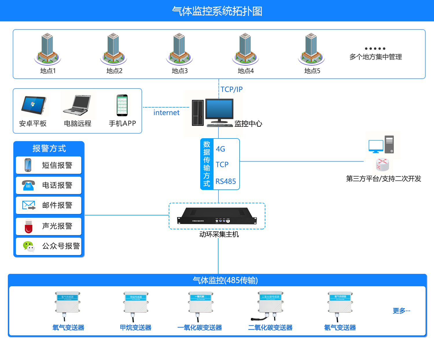 一氧化碳CO氣體監控系統將會探測到CO氣體濃度傳輸到系統上,一旦CO濃度達到設備上限報警值,監控系統就會發出聲光短信、電話、APP等報警第一時間聯系告知相關人員,并輸出限報警信號以啟動排風扇有效的措施,降低現場的CO氣體濃度。