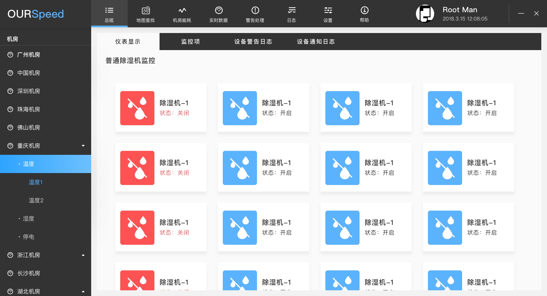 機房濕度大可聯動除濕機來做恒濕功能